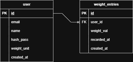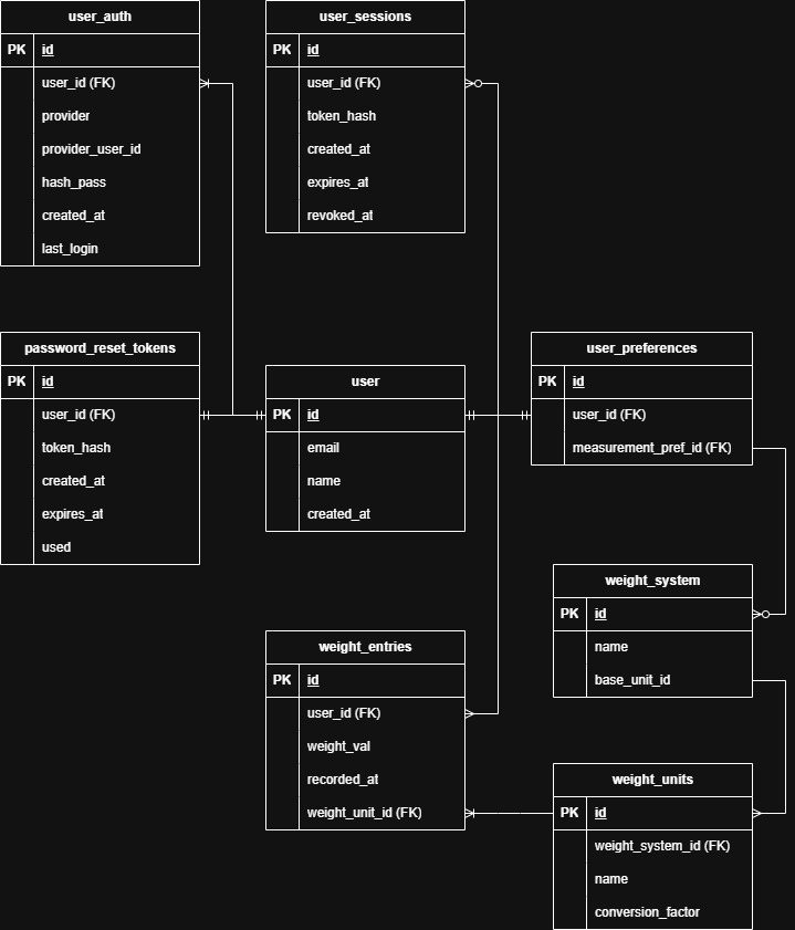 I like the idea of KISS and my app is simple. It’s designed to run on my homelab and served to friends and family. A user signs up. It stores name, email, etc in a users table. A user makes an entry. It stores those attributes in a weight_entries table.
